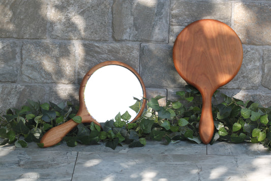 Hand Held Mirror, 6" Beveled Glass Mirror American Cherry wood